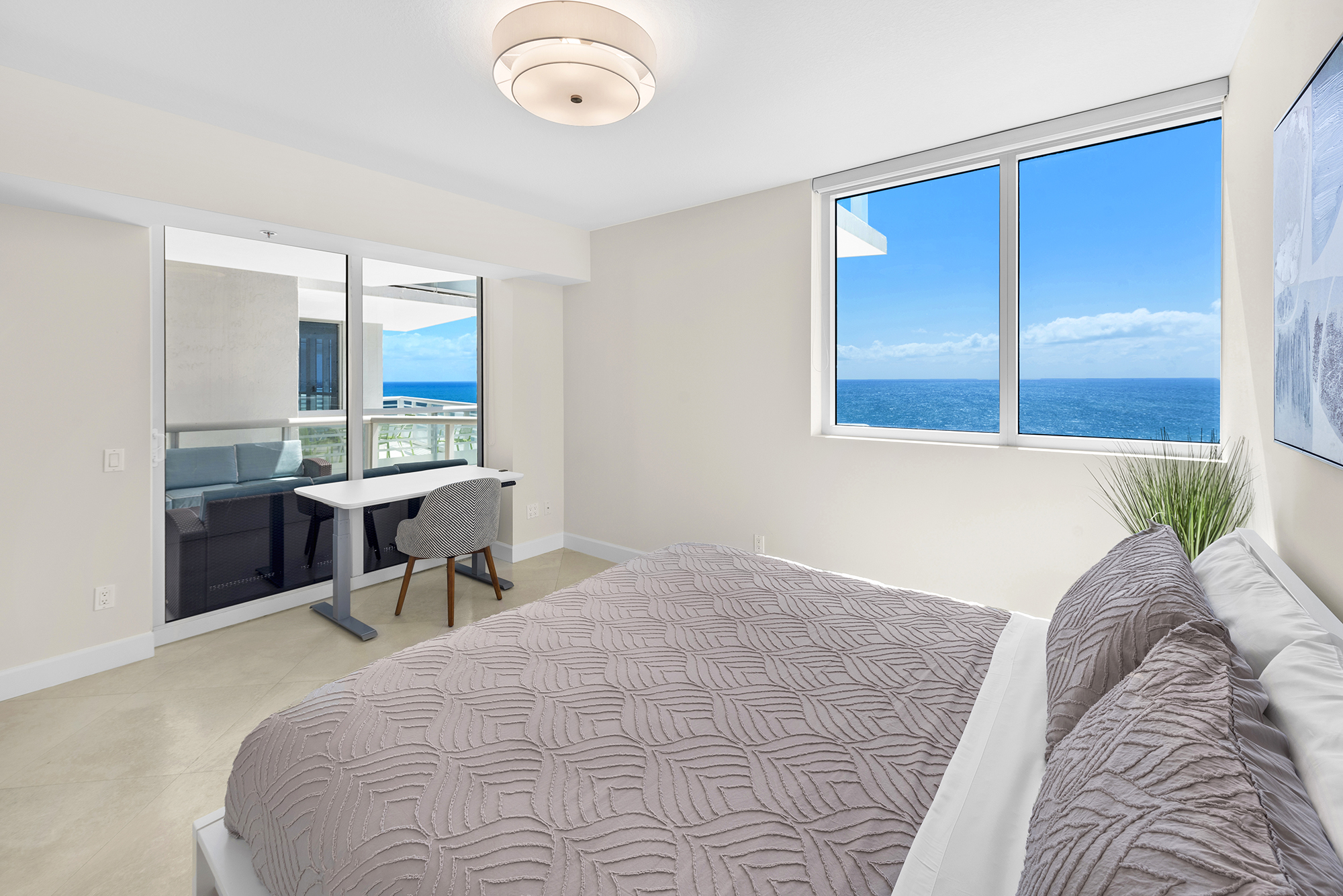 Indulge in endless ocean and city skyline views from this 3-bed, 3-bath oceanfront condo at Mosaic Miami Beach. Features: private elevator, two terraces, gourmet kitchen, oceanfront master suite, marble floors, and exquisite furnishings. Amenities: concierge, security, valet, pool, gym, movie theater, party rooms, beach service. Experience resort living in a boutique setting, close to South Beach and fine dining.
